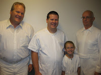 We had both my dad and Brian's dad in the font with Brian and Maya to help Brian baptize Maya. It's not everyday that the witnesses for the baptism are in the font with the person being baptized! It all worked out really well. Brian was able to baptize her without any problem.